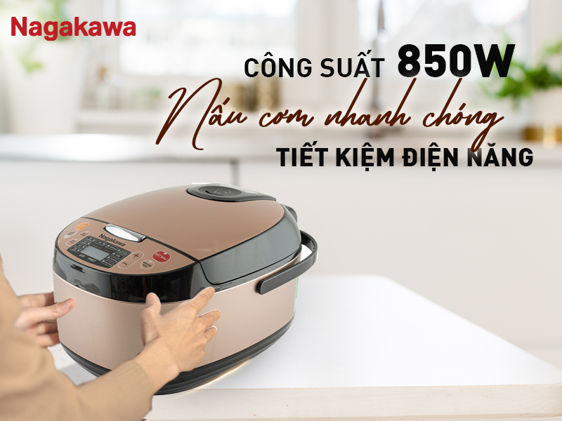 Với công suất lên đến 850W, Nagakawa NER5556 giúp nấu cơm chín nhanh hơn, tiết kiệm thời gian và điện năng. Bạn sẽ không phải chờ đợi lâu để thưởng thức bữa cơm nóng hổi, thơm ngon bên gia đình.