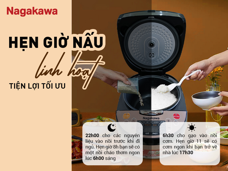 Hẹn giờ nấu linh hoạt, tiện lợi tối ưu