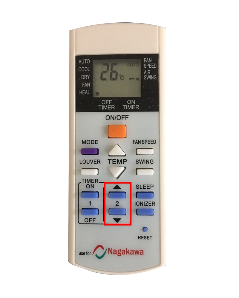 Bạn bấm giữ cùng lúc hai nút ▲ (tăng nhiệt độ) và ▼ (giảm nhiệt độ) trong khoảng 10 giây.