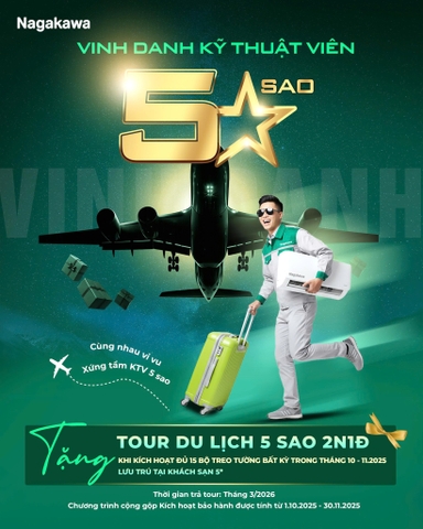 Trong suốt những năm qua, đội ngũ kỹ thuật viên lắp đặt điều hòa Nagakawa đã đóng vai trò then chốt trong việc đưa sản phẩm chất lượng cao của thương hiệu đến với hàng triệu gia đình Việt. Họ là những người làm việc thầm lặng, luôn đảm bảo từng bộ máy được lắp đặt chuẩn kỹ thuật, vận hành an toàn và hiệu quả. Nhằm tôn vinh những đóng góp ấy, Nagakawa triển khai chương trình ưu đãi lớn nhất trong năm – “Vi vu tour du lịch 5 sao – Xứng tầm kỹ thuật viên 5 sao”.